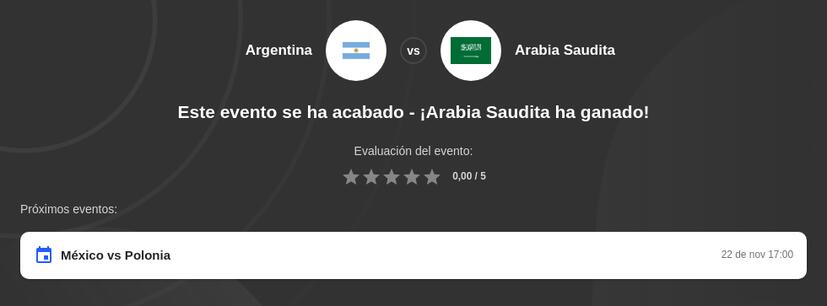 2. Argentina vs Arabia Saudí historial